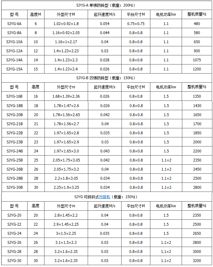 1、套缸式升降機(jī)電壓均為220V,需380V時(shí)單獨(dú)注明。